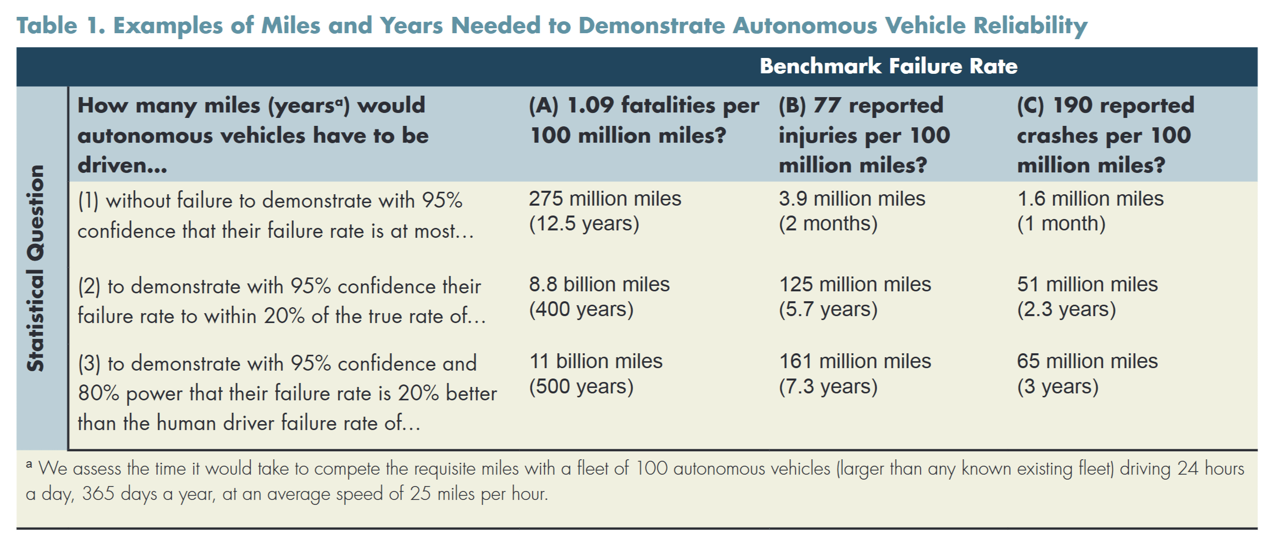 You did mention serious accidents specifically. I should look at the safety paper that was published by Waymo this year to see how they address this. This is the kind of disclosure of internal safety data that self-driving car companies have historically been extremely reluctant to make and that I would have killed to get my hands on back when I was writing a lot about self-driving cars. But the general difficulty can be seen in this report published by RAND Corporation in 2016. More serious accidents (those causing injuries or deaths) are much less common than minor collisions so, statistically, you need a lot more data before you can be confident about their actual frequency. The Waymo safety paper says it's looking at data from 57 million miles. According to the RAND report, that wouldn't be quite enough data to establish a lower collision rate than human drivers or even half as much as you'd need to establish a lower injury rate, but I guess maybe it could if the frequency were much, much less in the observed data. (However, you'd still have the bias introduced by comparing data from driving in geofenced areas to data collected about humans driving everywhere.)