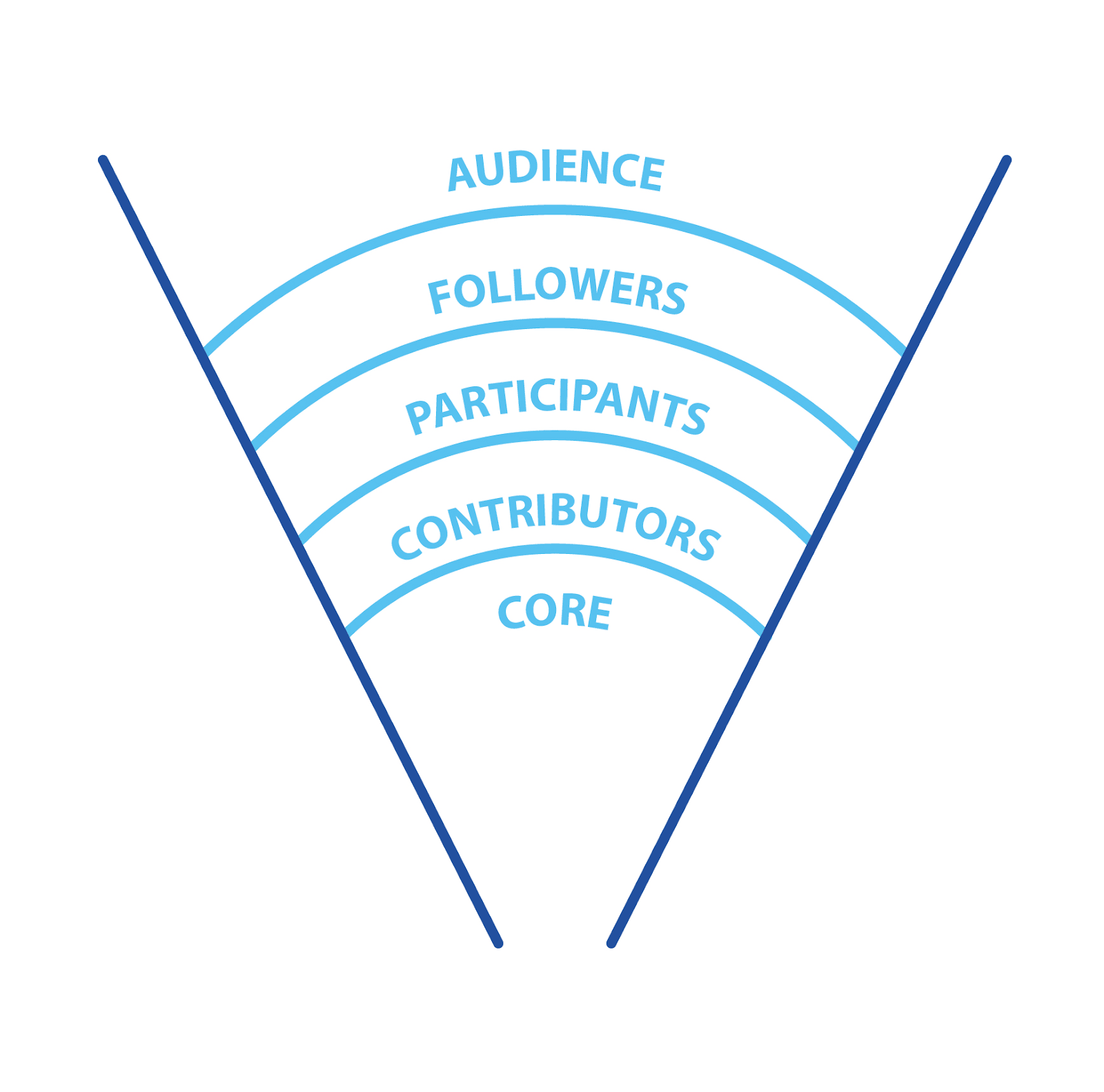- Continuous contact points: sustained engagement with a diverse group, over an extended period of time, helps people become contributors, core members and leaders