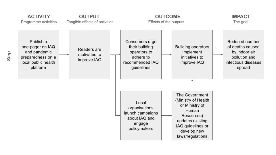 My teammates and I planned to conduct secondary research, draft policy recommendations, develop a cost-benefit analysis, create a communications plan, and engage local policymakers. However, through conversations with experts, we realised that federal policy changes require long-term lobbying and resources beyond our project’s scope. We then shifted to producing an editorial to educate specific audiences on the importance of IAQ for public health and pandemic preparedness.