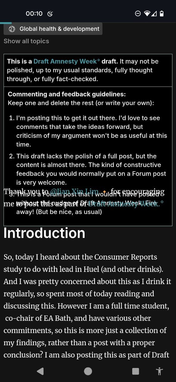 These posts will be marked as Draft Amnesty posts on the frontpage, with a coloured "Draft Amnesty" tag. If readers don't want to see Draft Amnesty posts, they can filter them out, as shown on the GIF below in the post (i.e. you won't be annoying anyone who only wants to see polished posts).