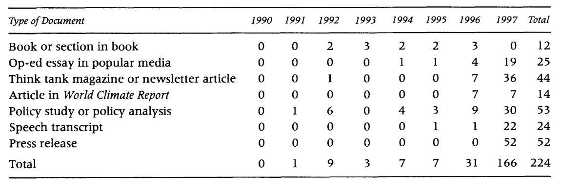 Figure 1: Type and Year of Publication of Documents on Global Warming Circulated by Major Conservative Think Tanks. Reprinted from McCright & Dunlap (2000).