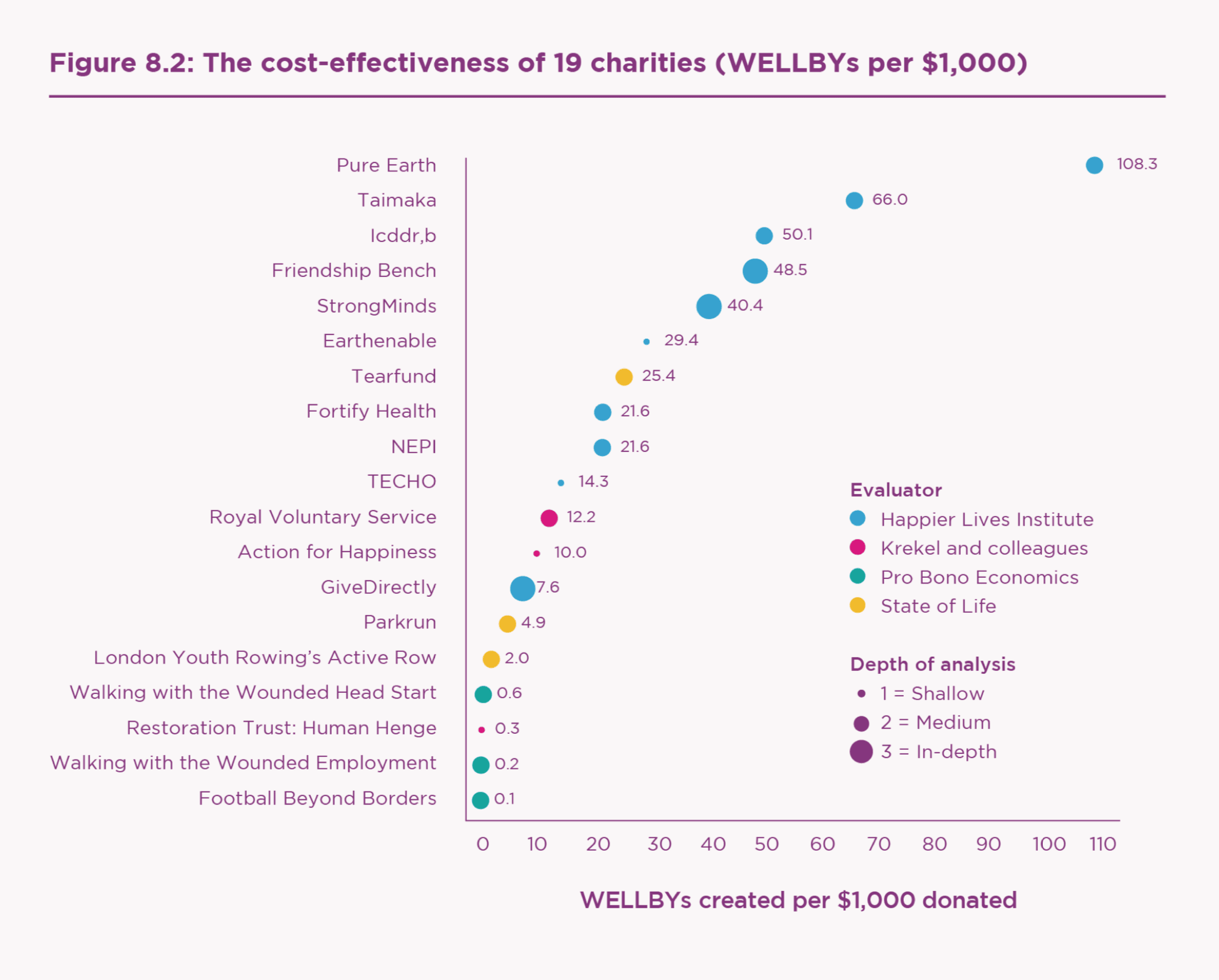 Also featuring is a chapter from the Happier Lives Institute, where they compare the cost-effectiveness of improving wellbeing across multiple charities. They find that the top charities (including Pure Earth and Tamaika) might be 100x as cost-effective as others, especially those in high-income countries.