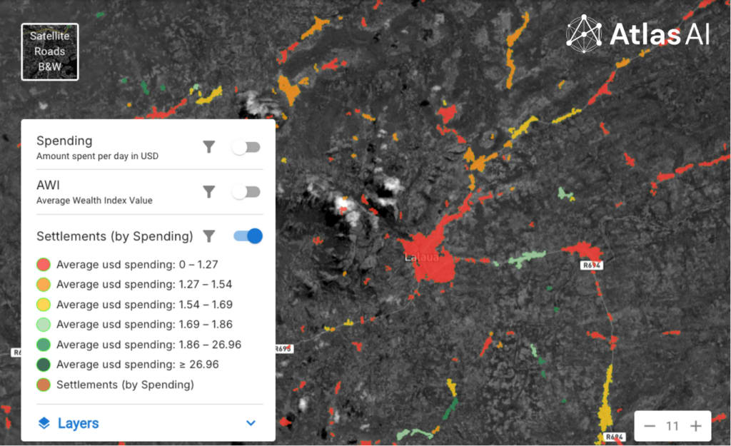 AtlasAI’s geospatial technology combines machine learning, satellite imagery and survey measurements to estimate average household spending in and across small villages. We have used this to identify the very poorest areas within Lalaua, Mozambique and verified the accuracy of the AtlasAI estimates through in-person field visits.