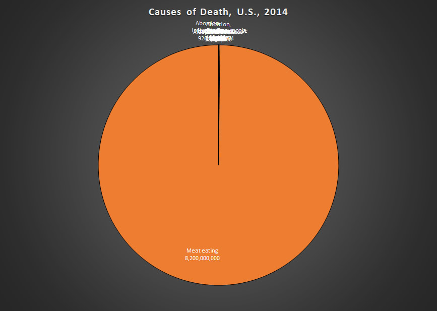 “It’s better to commit a thousand microaggressions than to buy one McDonald’s hamburger.” If you eat meat, the argument goes, you cause more suffering to animals than all but the worst serial killers cause to humans over the course of their life. If you compare aggregate farm animal deaths to human deaths, you get a chart like the following—all human deaths are a rounding error: