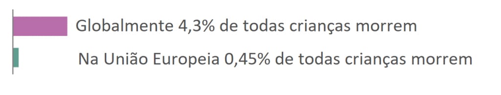 Para entender o quanto o mundo pode ser melhor, podemos nos perguntar como seria o mundo se a realidade da UE fosse a realidade de todo o planeta. E se as crianças de todo o mundo estivessem tão bem quanto as crianças da UE? Cinco milhões de crianças a menos morreriam a cada ano[7].