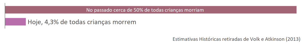 Os dados podem ajudar a lembrar a mudança de escala. Os historiadores estimam que, no passado, cerca de metade de todas as crianças morriam antes de chegar ao fim da puberdade. Isso era verdade não importa em que lugar do mundo que essa criança nascia e só começou a mudar no século 19, apenas algumas gerações atrás[3].