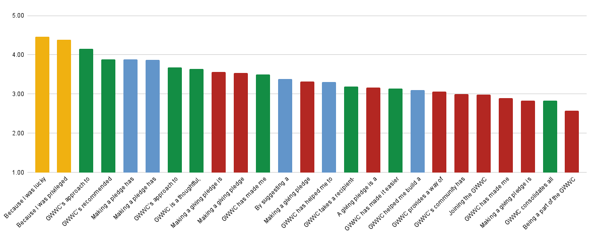 This might seem straightforward, but we discovered that there were so many different motivations that it was hard to know which ones were most important to lead with. Without a clear understanding of the most compelling messages, we could be missing out on significant community growth – and thus potentially missing out on billions of dollars that could be donated to highly effective charities.