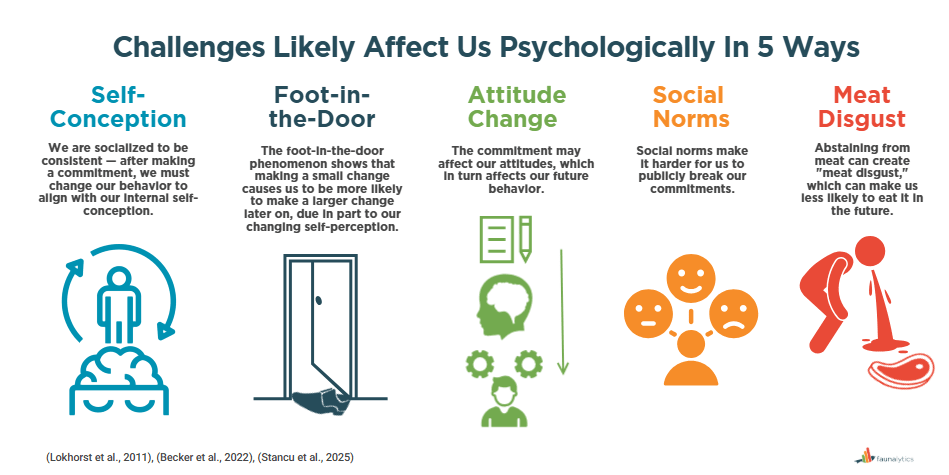 - Challenge participants have many motivations, including animal welfare, climate, health, and more. No one message will work on everybody – we need diversity in outreach campaigns.