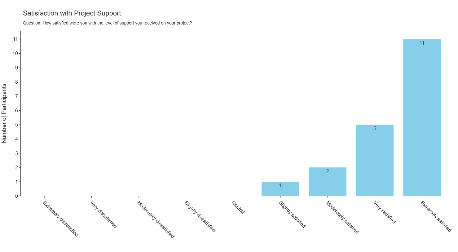 TARA participants received project support from their peers, co-organisers, and the teaching assistant throughout the 3-week project phase. This support worked well, with 84% of participants reporting being very or extremely satisfied with the help they received.