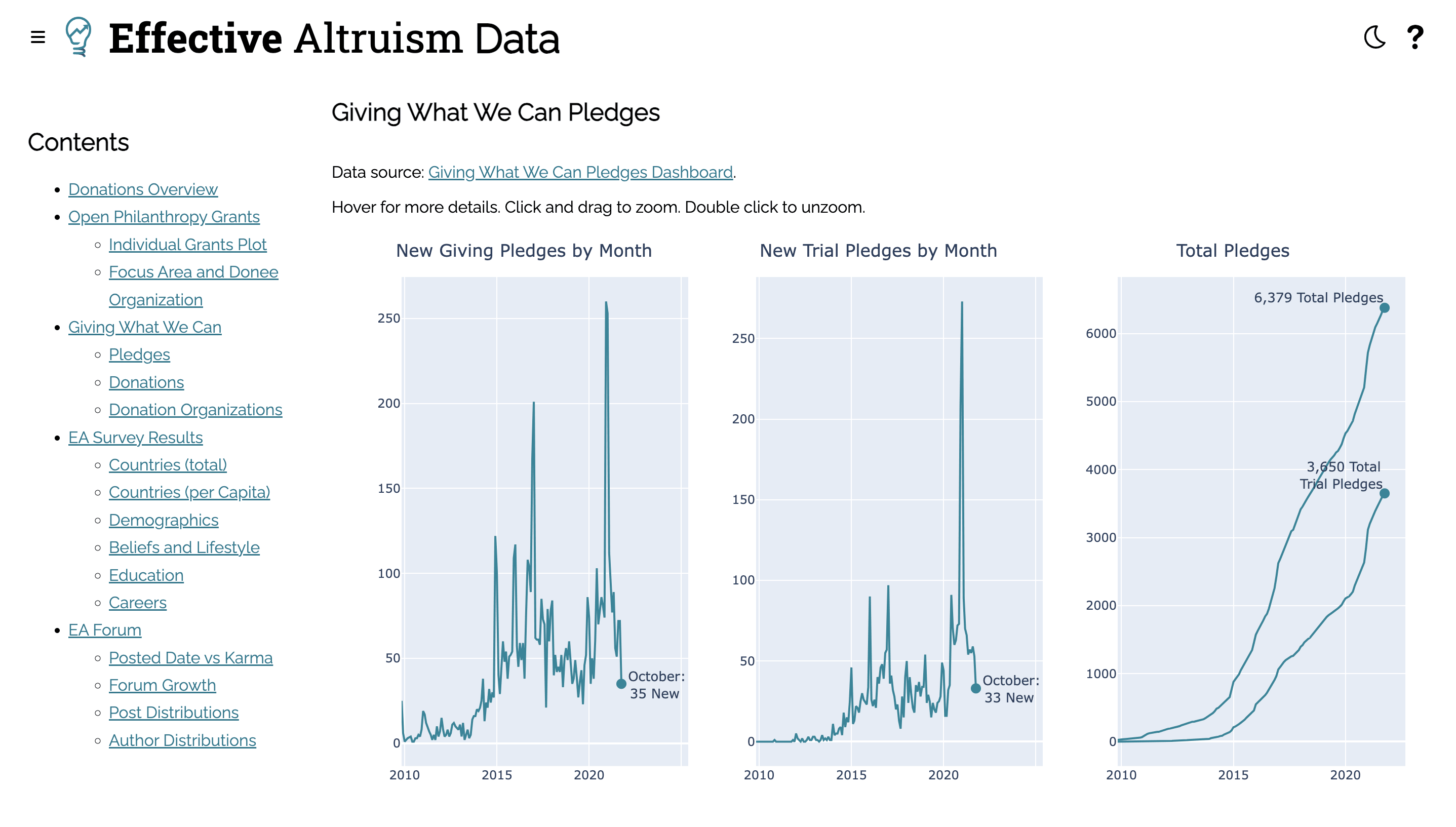 A few years ago I built EffectiveAltruismData.com which looked like this: