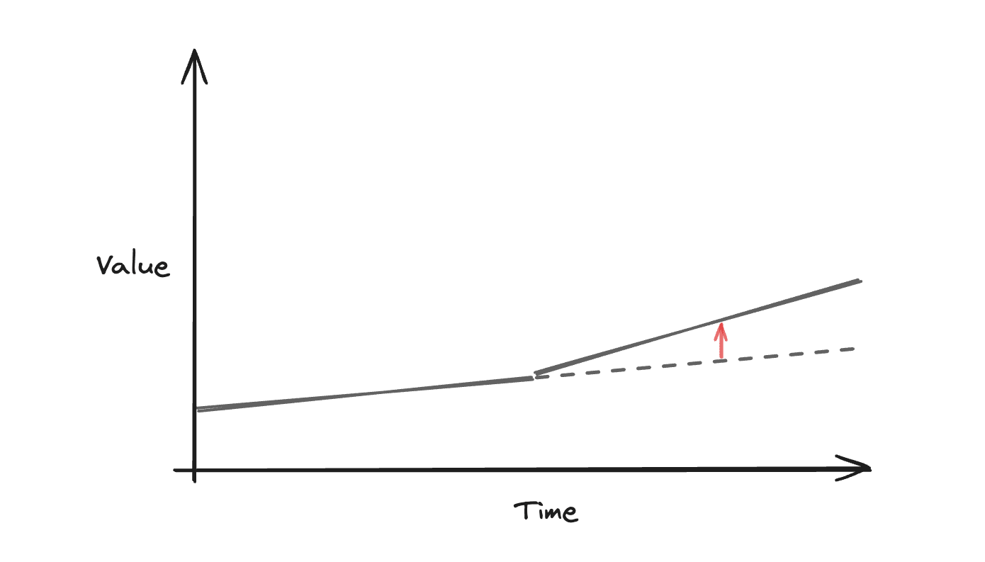 This is mostly independent of other work by your team - you’re creating a source of value that keeps on giving over time, even without further investment.