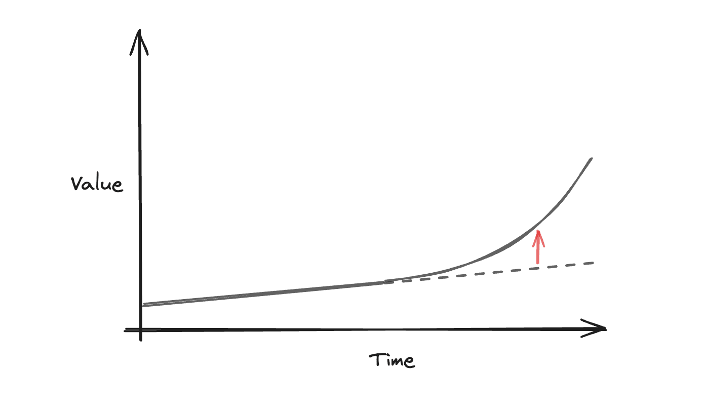 This is powerful if the value is already big, but the magic of compound returns can turn even small starting values into huge outcomes given time.