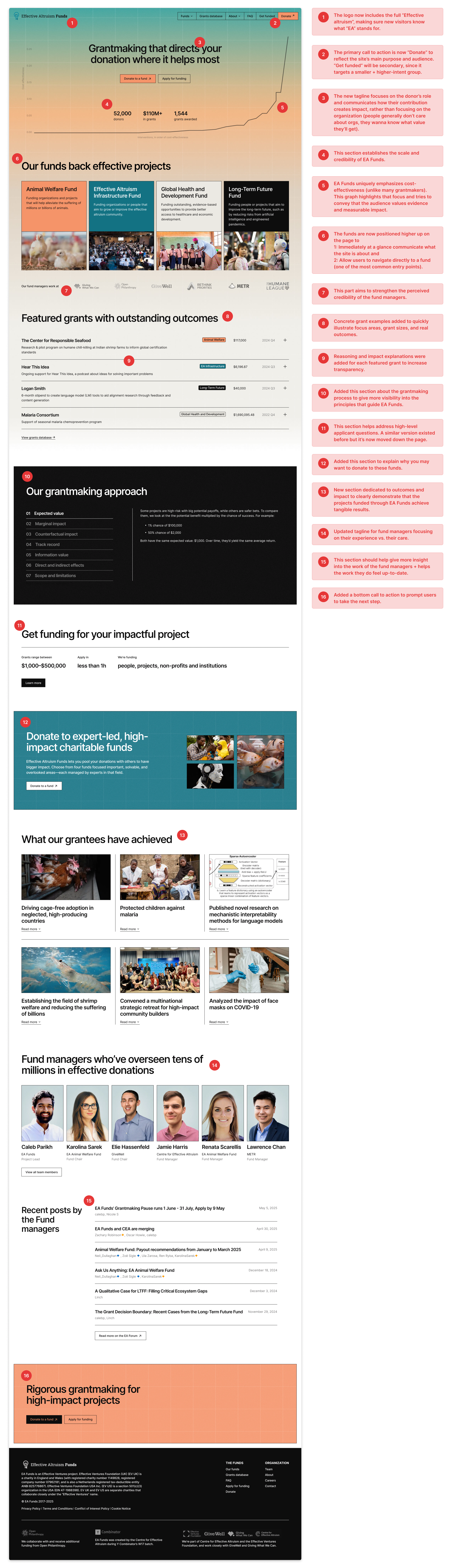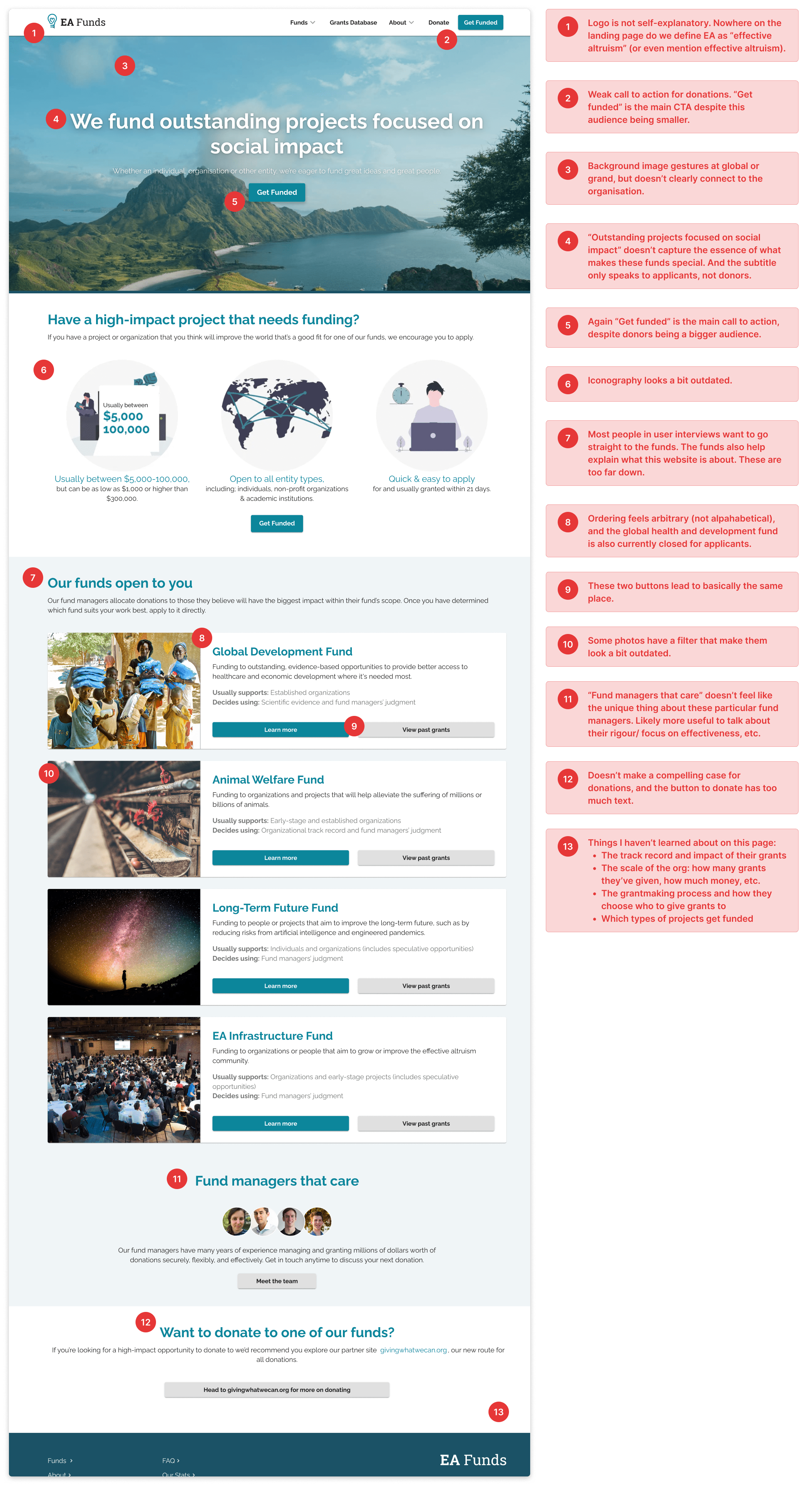 A key focus for EA Funds moving forward is increasing reasoning transparency. In that spirit, I’ve included an audit of the previous site along with the rationale behind design decisions in the new version.